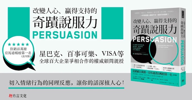 留言即有機會獲得《改變人心、贏得支持的奇蹟說服力》x1 本 ▶ 點我抽獎去