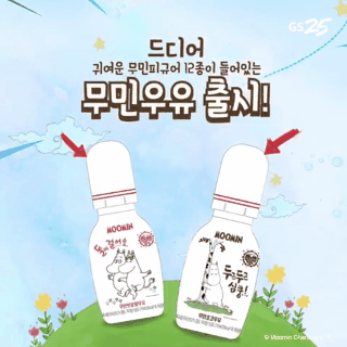 首先就是上週剛推出的「嚕嚕米牛奶瓶」啦~外形是保齡球形狀的可愛瓶身,上頭就已經有嚕嚕米的包裝了。不過更厲害的還藏在裡頭呢!