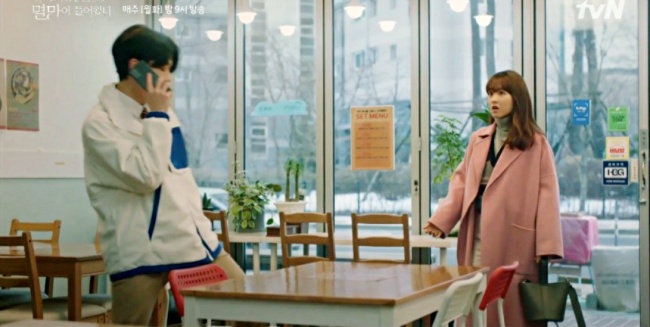 卓主任收爛攤子現場(笑),手上拎著「MARHEN.J(마르헨제이)」出品的隨身灰色小包,以帆布包擁有高人氣的MARHEN.J,朴寶英選擇皮質小灰包搭配草莓粉色的長版大衣,詢問度也是超高!(妞妞們可以把以上韓劇女主同款收入清單囉~)