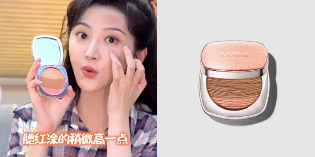 La Mer這塊完美修容餅色塊比較小,但還是有三色,最小的淺色可以用來打亮,中間是修容,下方的橘色調可以用來當眼影和腮紅,腮紅塗高一點會有年輕感,景甜也說好好地打亮在拍攝時可以營造出燈光給不出的效果。