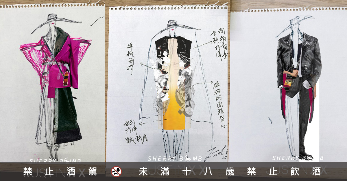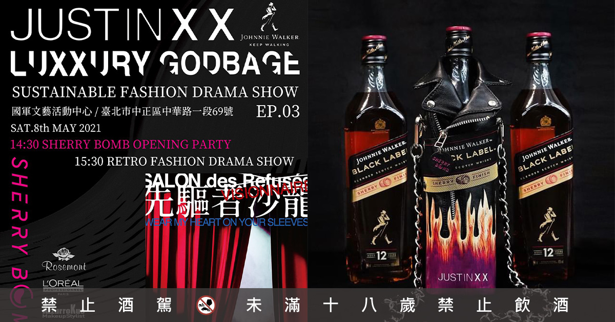 JOHNNIE WALKER挾帶雪莉炸彈時尚新勢力,聯手鬼才設計師周裕穎打造震撼潮流界的永續時裝秀《先驅者沙龍 Salon des Visionnaire》,即將在5月8日重磅登場。具有前衛、時尚DNA的JOHNNIE WALKER雪莉炸彈(黑牌12年雪莉桶風味威士忌)以經典雪莉桶豐厚的莓果、蜜餞及巧克力風味擄獲年輕人的心,此次找上台灣之光服裝設計師周裕穎,與其旗下支線副牌LUXXURY GODBAGE byJUST IN XX共同推出震撼的跨界時尚秀作品,其中三件啟發自JOHNNIE WALKER雪莉炸彈的專屬潮服設計,驚喜翻玩威士忌經典元素,展現90年代自由狂放的迷人風采。人穿潮服不稀奇!JUST IN XX 與JOHNNIE WALKER大膽挑戰全球第一件「酒瓶潮服」!此次合作令人耳目一新的設計莫過於周裕穎親自操刀設計JUST IN XX與JOHNNIE WALKER雪莉炸彈聯名極限量火焰酒瓶潮服,打破傳統框架首度替威士忌穿上時尚外衣,僅為行家限量典藏無對外販售。周裕穎以約翰走路經典LOGO行走的紳士為發想主軸,將紳裝元素幻化為新潮的皮衣造型,替JOHNNIE WALKER經典方瓶穿上前衛皮衣,再加入LUXXURY GODBAGE by JUST IN XX本次發表「雪莉炸彈浴火重生」中吸睛的火焰造型元素,大膽呈現炫目的雪莉紫紅與個性黑。全球第一件「酒瓶潮服」堪稱蘇格蘭威士忌品牌與台灣設計師最強時尚聯名合作,秀出雪莉炸彈的超凡魅力,炸翻大眾對威士忌傳統保守的想像,向每一位勇於創新挑戰的「先驅者」致敬!