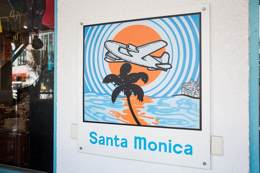 從不知道幾年前開始,原宿被塑造成古著的街道。走過熱鬧的街道後來到Santa monica,這間一開始開幕時只有販賣女性服飾的店,經營了37年,卻是這裡最新的店家。裝潢以白色為主,掛著大大的招牌,寫著店家的想法「可以穿得整潔的古著」。對於古著電來說或許有些稀奇,這裏有三成是收購新品。