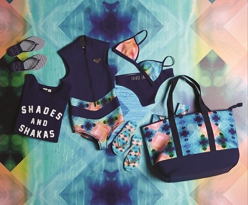 2017 ROXY「POP SURF - 艷染蔚藍」系列,再次以奪目的印花與前衛時尚剪裁,吸引女孩焦點,本季運用水色轉印與金色細部設計完美融合,呈現蔚藍天空落映在靜謐海面的風景,清澈地暈染出如萬花筒般的千變印花,女孩們可以恣意的踏著異國的舞步交織出醉夜的流金,全新譜出ROXY 春季的自由與奔放!