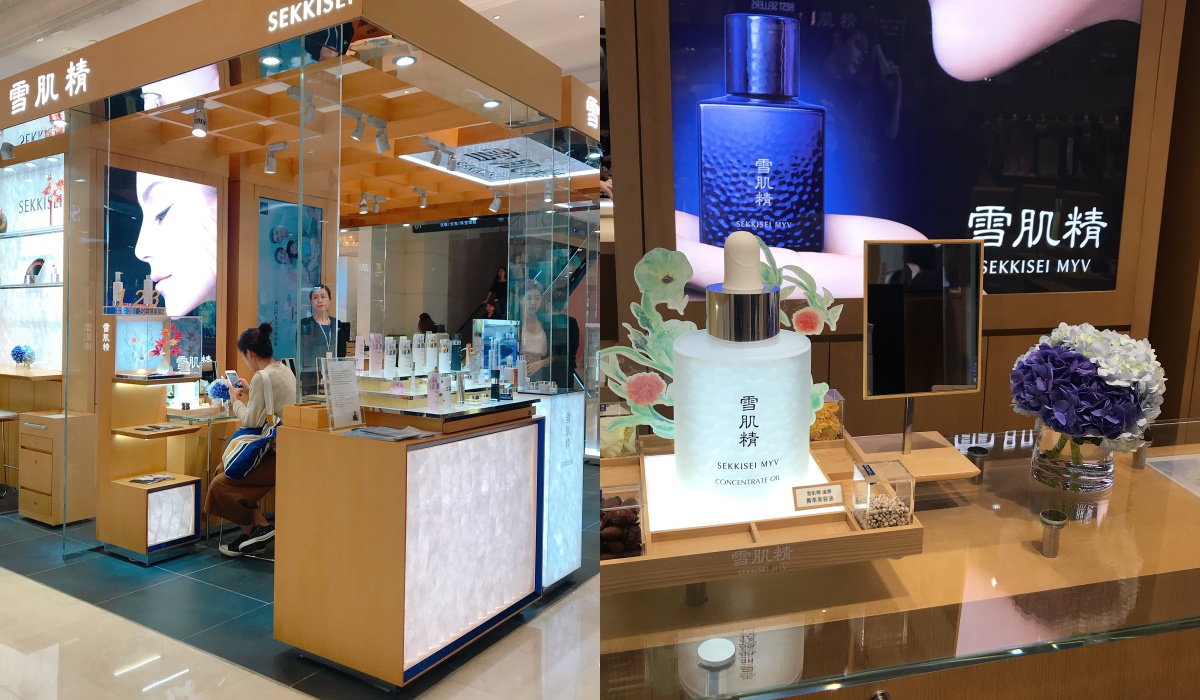 有別於經典藍瓶,「雪肌精御雅」採用日式和風設計,整個產品就像是一個藝術品,雪肌精御雅專櫃也延續品牌風格,優雅的和風設計,十分舒適。台灣預計明年也會有全新專櫃,雪肌精粉絲可以期待一下!