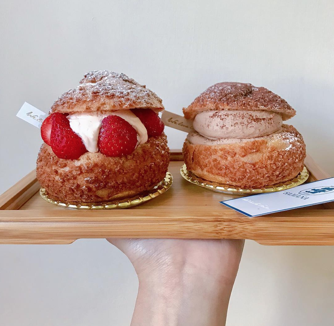 山姆安娜是一間麵包店~除了麵包好吃外,布丁泡芙們的人氣也非常旺!珍珠布丁口味特別吸睛,除了伯爵紅茶奶餡外更夾上了布丁和珍珠~一口咬下超滿足,下次去台中一定要吃到♡