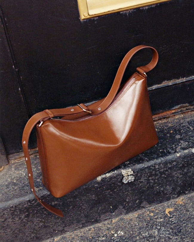 大勢Y2K風靠它加分!日本品牌JEANASIS的腋下包採用的是仿舊感的巧克力棕色,搭配包面大大的「雙方形口袋設計」,以及金屬釦環、拉鍊等個性小細節,穿上寬鬆牛仔褲、隨手拿上一咖出門就是2024時下最流行的OOTD。