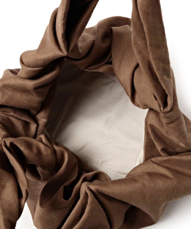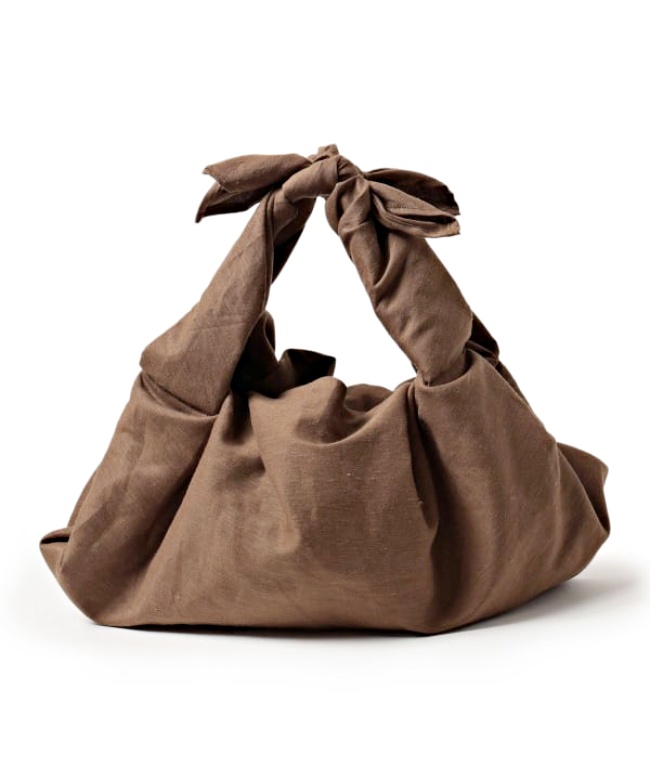 是包包?還是糖果?BEAMS打造的咖啡棕色手提包乍看就像是一顆包裝完整的「巧克力口味糖」!配色單一、沒有多餘裝飾的包面,光靠特殊的打結式包型就很吸睛可愛,採用縱向縲縈和橫向的亞麻紗線的布料製作,包包鬆鬆軟軟充滿圓潤感,絕對是熱愛慵懶系穿搭的妞妞們的愛~