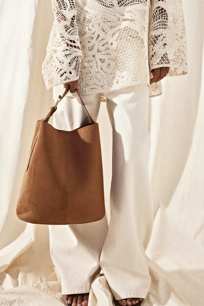 誰說巧克力棕太秋冬?去年正夯的美拉德風,一秒可以轉換成夏日度假的神隊友「波希米亞風」(笑),H&M這款用起絨布料打造的水桶包,單一寬背帶設計加上金屬飾釦增添個性俐落感,沈穩的咖棕色搭配「輕薄浪漫的蕾絲單品」超時髦,出遊就這樣穿吧!