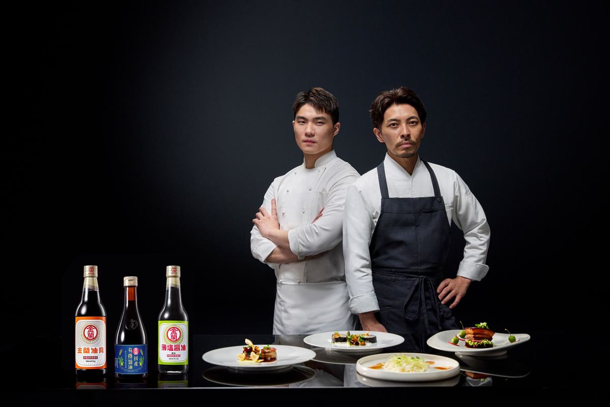 金蘭傳承台菜美味,宣布攜手米其林雙主廚—SENS吳定祐(左),以及EMBERS郭庭瑋(右)創作。(金蘭食品提供)