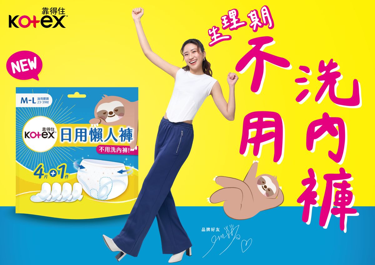 女性生理用品領導品牌Kotex靠得住,繼先前推出讓女性經期也能一夜好眠的晚安好眠褲後廣受好評後,進一步透過市場調查了解女性生理期白天困擾,發現眾多女性們都希望能有一款讓她們遠離外漏的產品!故Kotex靠得住近日重磅推出市場前所未有、的革命式產品 —『Kotex靠得住日用懶人褲』,一包裡面有1件日拋生理褲,搭配4片瞬吸替換棉,是市場上第一款專屬白天的褲型衛生棉。