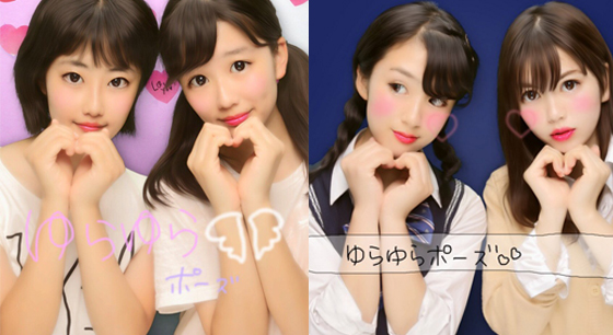 與藤田ニコル都是《popteen》雜誌的麻豆,越智ゆらの將雙手比愛心放在下巴下的「ゆらゆらポーズ」,比起來超級萌,相信很多男生也會被這楚楚可憐的模樣融化吧!
