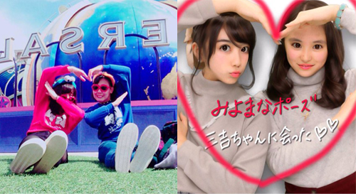 みよまなポーズ這個拍照姿勢如圖示,需要透過兩個人的兩隻手臂比出一個大愛心,藉由兩人的合體,更能象徵彼此深厚的羈絆。好姊妹們不妨拍拍看這個愛心合體技能吧~(笑)