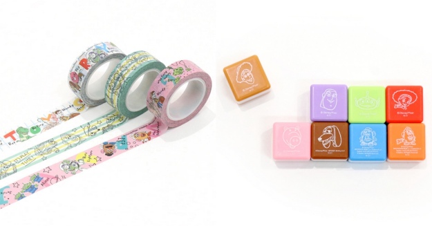 拉近鏡頭看一下紙膠帶、印章與便利貼,紙膠帶超繽紛的呢!(笑)妞編輯要特別介紹印章與便利貼,其中印章以各角色的大頭為圖案,是「一組」販售,不怕選擇障礙發作選不出要哪一個,胡迪、巴斯、彈簧狗等角色可以一次擁有♡便利貼則是走黑白漫畫風,可以把想說的話寫在上面,讓巴斯、胡迪幫你傳話~