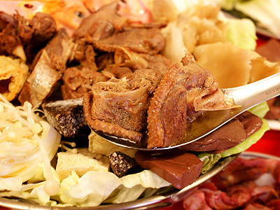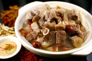 羊肉爐一定要配麵線啦!可以先吃原味,再加點湯吃,之後再加豆瓣醬吃。配菜可以選韭菜、洋蔥、香菜等,可增加鍋底香氣甜度,還可以調降火氣,多吃羊大骨羊腳筋可以補充鈣質和膠質。一些傳統老店都會特調超搭羊肉的沾醬,一定要去朝聖的啊!