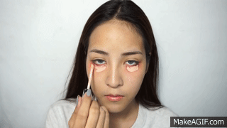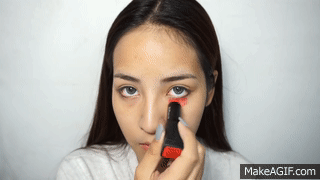 最後用遮瑕膏疊擦在眼圈上,用海綿輕輕拍勻就完成校正膚色的步驟了。