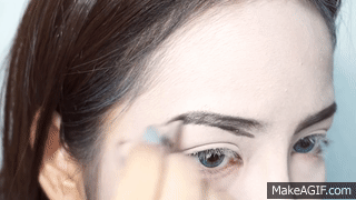 用黑色眼影加強上下眼線之餘,並在上眼皮眼尾與雙眼皮眼褶尾端畫上ㄑ字型做出煙燻妝的效果。