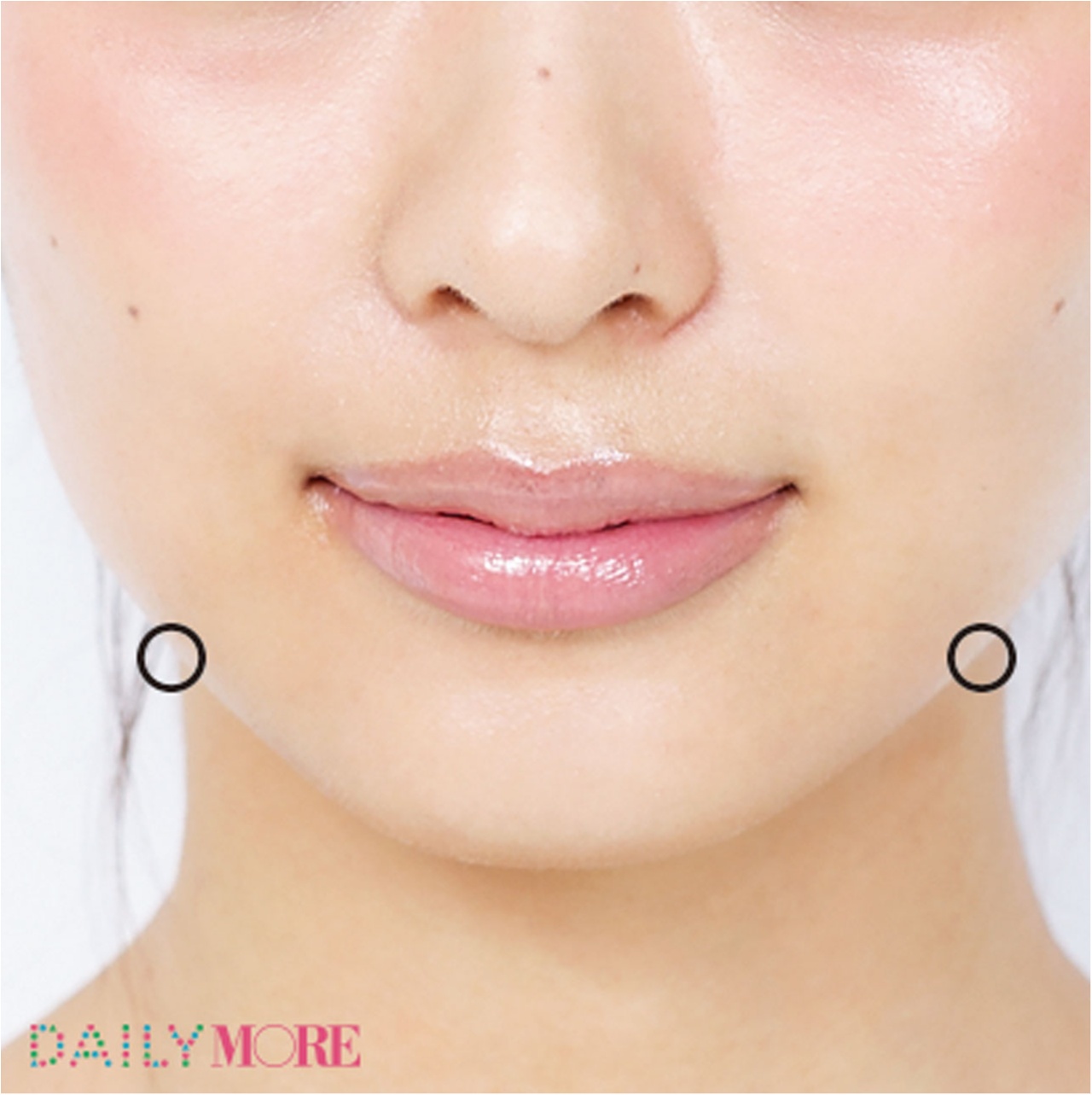 接著嘴角兩側的位置,按摩這邊可以改善臉部線條鬆弛的問題~