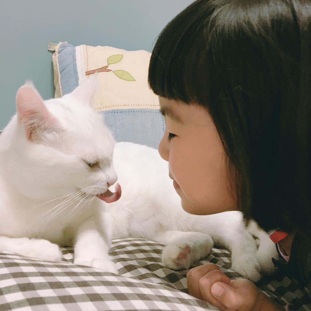 不只爸媽疼愛牠們,小姊姊也非常愛貓咪북끄呢~