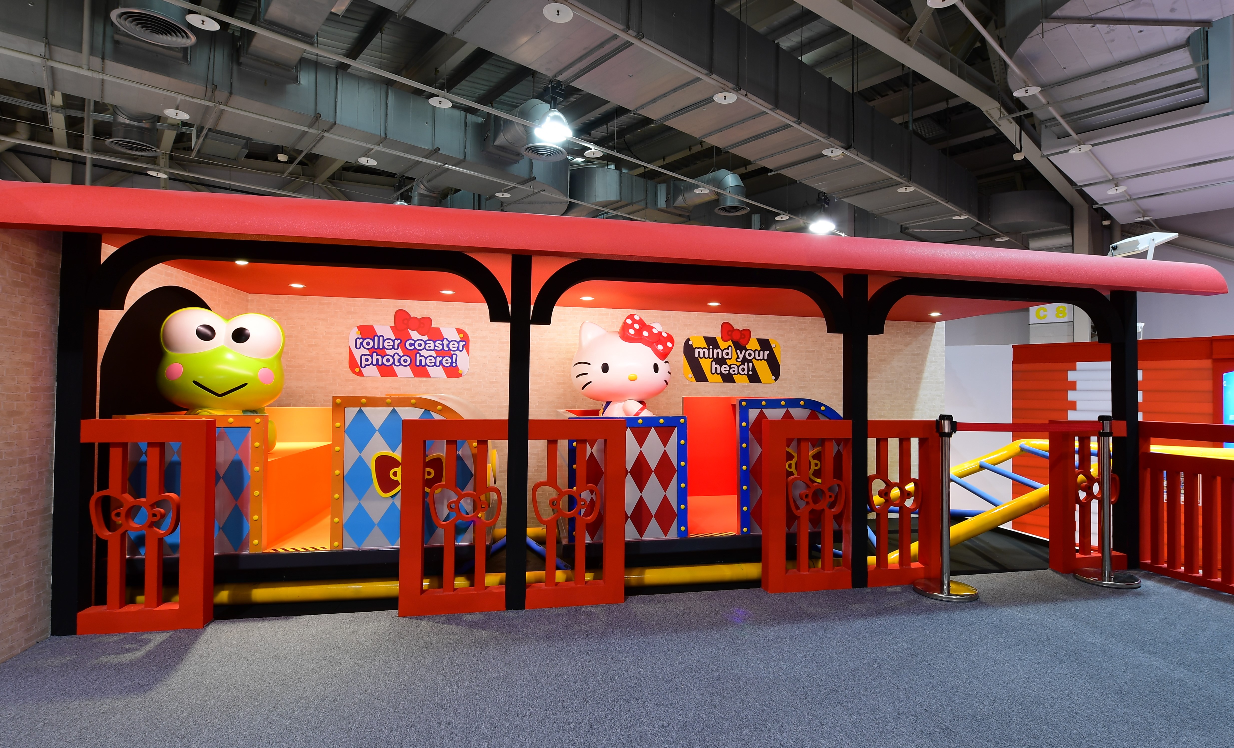 既然是專業的遊樂園,當然也就少不了可愛的小火車囉!走上階梯後就可以看見Hello Kitt和大眼蛙已經坐上友誼特快車,前方還有可愛的列車長,等著你搭上列車準備出發囉!