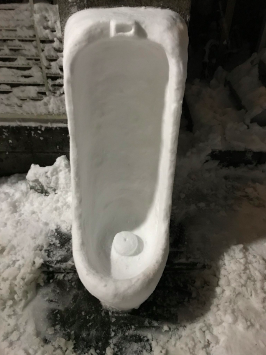 尿急但找不到廁所嗎?不用急,在這到處都是雪的地方,趕快做出一個小便斗就可以了~(如果還有餘力,順便再蓋個門好了XD)
