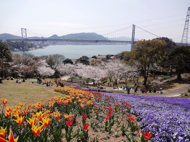 「火之山公園」位於下關市的火之山山頂,屬於瀨戶內海國立公園的一部分,從山頂可將關門海峽、關門大橋、瀨戶內海和日本海一覽無遺,特別在3-5月時搖身一變成為賞櫻和賞杜鵑花的聖地,吸引許多人前往。可從山下搭乘巴士或是慢慢散步至山頂,搭乘纜車也是個不錯的選擇。