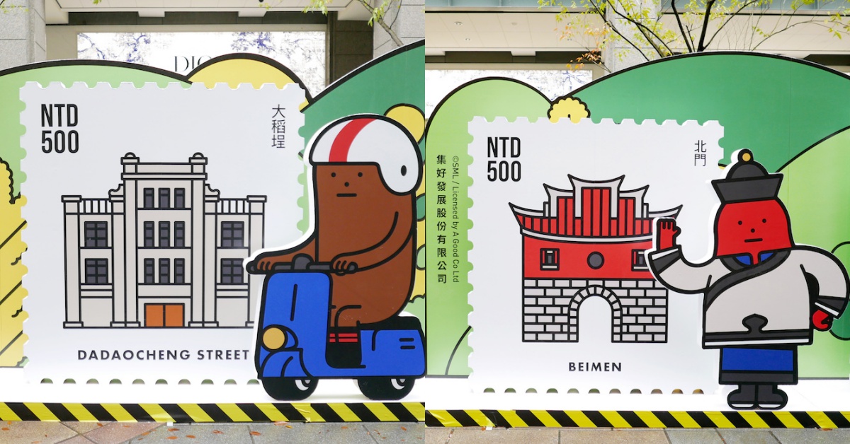 這次的黏黏怪做成「巨型景點郵票」的方式呈現,包含北投溫泉、饒河夜市、龍山寺、貓空纜車...等等地點,還配合上超有「台味」的舉動,像是戴小籠包帽、騎機車、喝珍奶,令人會心一笑。