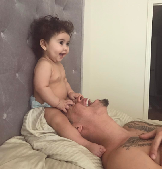 最近他們的女兒牙牙學語的模樣真的可愛到過火,其中有一支Po出兩天就破兩百萬觀看次數的IG短片,爸爸一開始先說他真的很難過,他一開門女兒竟然問他「爸爸~你喜歡我的比基尼嗎?」,鏡頭帶到他女兒,一臉天真可愛的穿著火辣的比基尼,女兒傻瓜爸爸:「一點都不好笑,你穿這什麼,你長太快了!」父女的互動實在太可愛又好有愛啊~