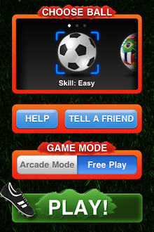 身為一款走到哪踢到哪的足球遊戲,連遊戲中的設定也是很free,只有難度與玩法兩樣需要注意的選項而已。難度的選擇就在主畫面最上方的「選擇足球」。總共分成三種,利用不同的足球來區分難度等級:分別是傳統的黑色五角形白底足球,利用世界各國國旗拼織成的彩色足球,還有與去年世足賽用球樣式類似的金色足球。玩法則有Arcade Mode與Free Play兩種選擇,差別在於有沒有計分。每一顆足球踢起來的感覺都有些不同,操作上當然也就有難度上的差別,建議可以先選擇最簡單的黑白足球與Free Play來訓練球感吧!