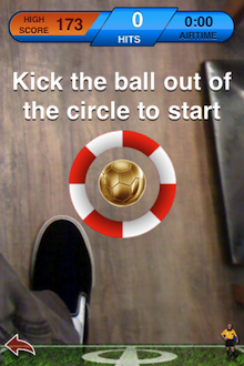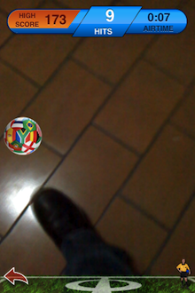 習慣遊戲的操作以後就來試試Arcade Mode吧!在Arcade Mode中,畫面上方多了高分紀錄與目前積分,還有這次足球維持在空中的時間。踢越多下Hits數就會越高,持續時間越長Air Time自然也就越久,很簡單的!