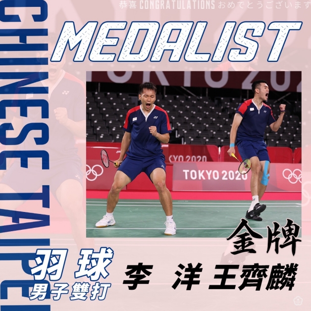 「黃金男雙」李洋和王齊麟,「麟洋配」在羽球男子雙打中,小組賽擊敗世界排名第一的印尼,八強賽遇上地主隊,之後直落二陸續贏地主隊日本和印尼傳奇組合,金牌戰對上中國李俊慧和劉雨辰,以21:18和21:12直落二拿金牌,成為我國羽球奧運史上第一次闖入四強和拿下金牌的羽球混雙,王齊麟和李洋也能大喊:「我只想大聲的告訴大家,我叫王齊麟,我來自台灣!」和「我是李洋!我金門人我驕傲,我台灣人我驕傲!」聖筊啦!(「麟洋配」李洋和王齊麟26金句)