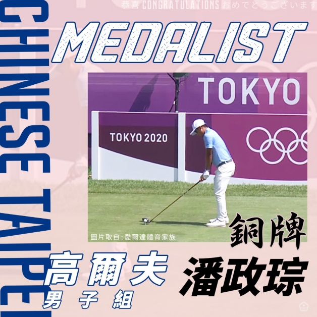 「高球一哥」潘政琮,在「高爾夫男子組」,從白天打到黃昏,從最初的落後一路急起直追殺進延長賽,最後加賽超穩的表現,成績僅次於美國選手「山大·蕭佛利」和斯洛伐克選手「羅里·薩巴蒂尼」,歷史性的逆轉勝拿下銅牌,是台灣首面奧運高爾夫項目獎牌!(東京奧運「14位國民代表」)