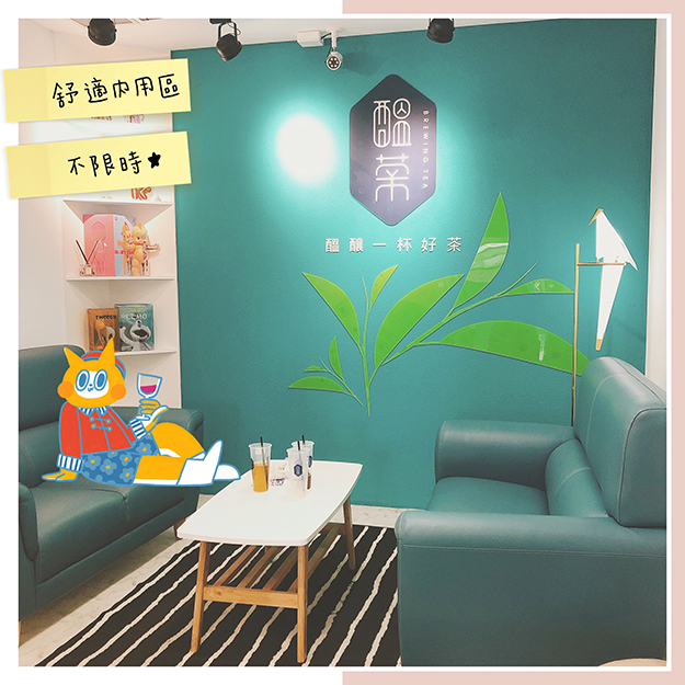 搭配醞茶底色的碧綠沙發,鳥造型的立燈,童趣公仔以及角落的動物小板凳;醞茶在車水馬龍的都市裡打造了一方和家一樣舒適、可以放鬆身心的小天地。