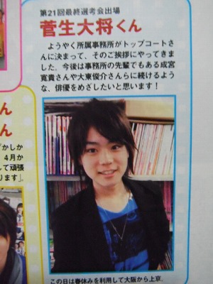 當時以本名菅生大將出現在雜誌中。以前的菅田眼神好可愛,現在變得好會勾妹了啊~