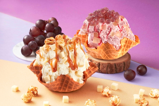 萄氣小女葡口味為「巨峰葡萄冰淇淋」,使用以超大果實和果香多汁聞名的「葡萄之王」巨峰葡萄,拌入蜂蜜蘆薈,佐以多重工法慢火熬煮的「葡萄珍珠」,淋上酸甜巨峰葡萄醬,「噗滋噗滋」地清脆爆汁,再加上葡萄珍珠珠芯Q彈,葡萄果香三倍濃郁!