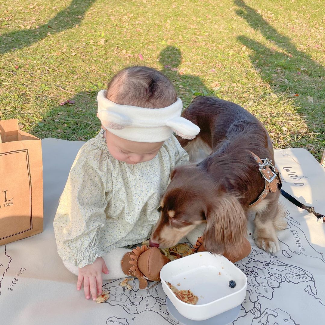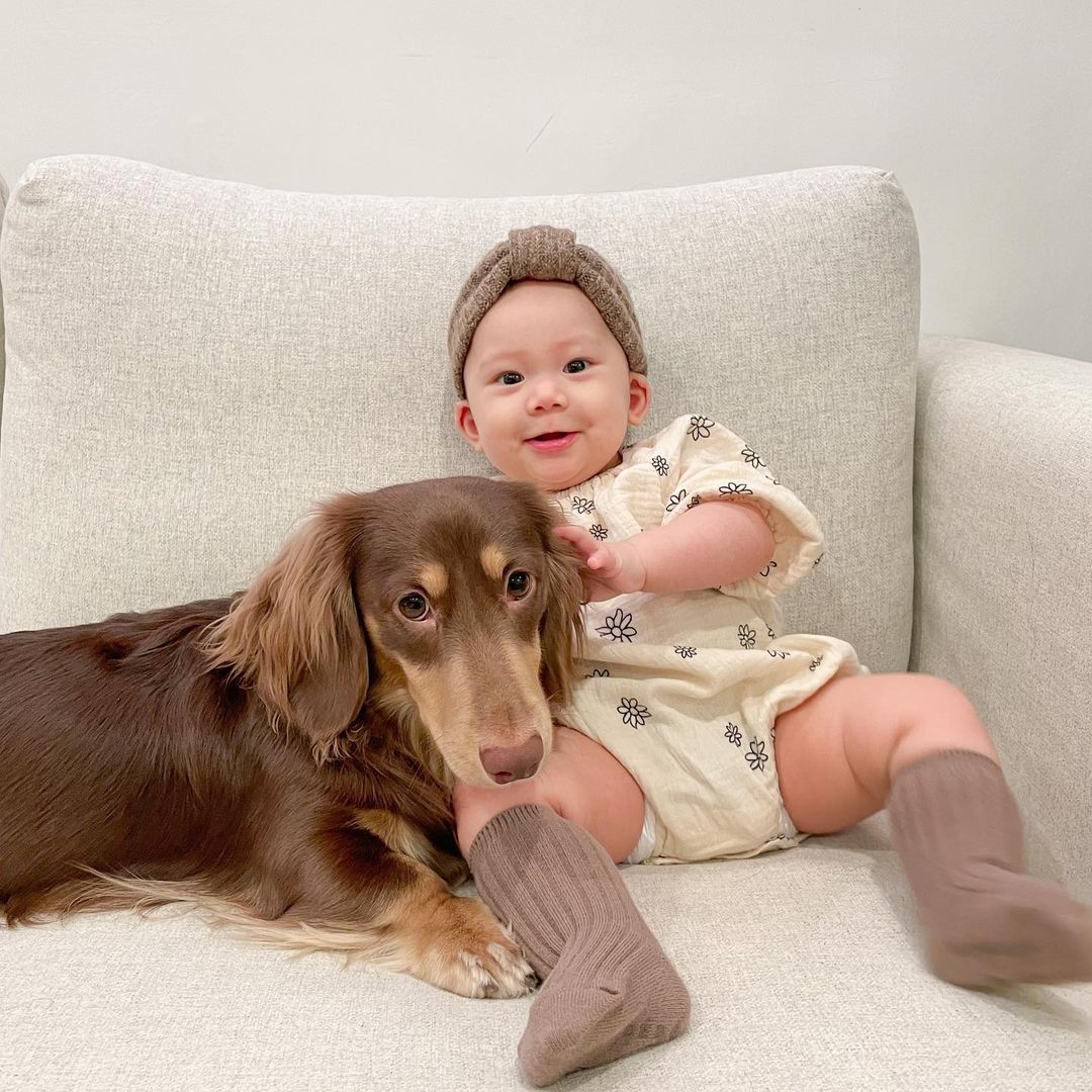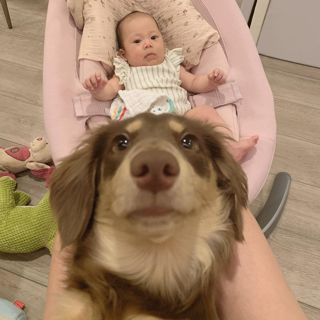 羅密歐是一隻巧克力奶油色的臘腸狗,慕娜妹妹從出生到現在都跟牠相處在一起,是活潑好動的一歲小男生喔!看到這邊可能很多人會擔心寶寶跟寵物的相處問題,媽媽也根據大家的疑慮分享:「醫生説寶寶跟寵物相處免疫力會更好,比較不容易過敏,更是對情緒及責任感都很有幫助!」。