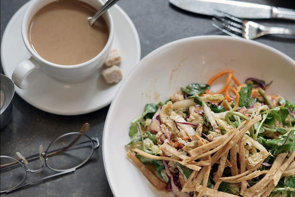 到這裡必點的brunch菜色是各種沙拉,我習慣先喝咖啡再視心情選杯早午餐調酒。大白天的光看bartender拿酒瓶的動作就覺得很療癒,(咦?)消暑的Mimosa或是白酒,索性拿起高腳杯換到吧台的座位吧!另外,這裡值得介紹的還有藏在院子裡的秘密花園,隱密性十足的半室外用餐空間,需要從盥洗室旁邊的小門進出,(算是給有來上廁所的人一個福利)隨著店內的音樂走走晃晃,享受布魯克林式的微醺週末。