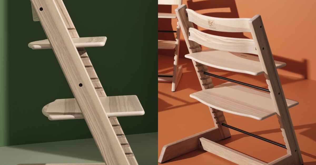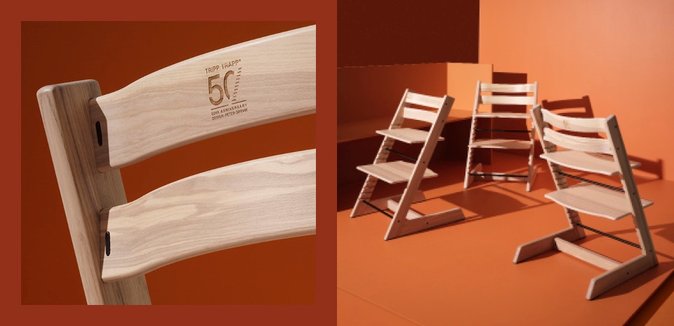 為了慶祝Tripp Trapp50週年,Stokke推出全球限量白蠟木紀念款,全台僅有50把!每把紀念款都有雷射刻印的50週年紀念標誌;白蠟木如大理石般的天然紋理,也為每把椅子創造了獨特的印記,宛如一件真正的藝術藏品,就像即將坐在這張椅子上成長的小寶貝一樣,在這個世界上絕無僅有。