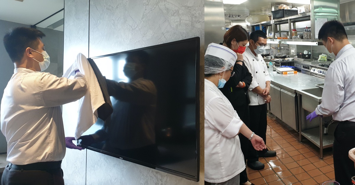 另一項「藝康科學守護ECOLAB Science Certified」認證重點為客房清潔作業流程,提供不同空間的清潔消毒建議方案與操作指南,透過專業的培訓,飯店同仁依照認證標準,實行客房清潔作業與餐廳清潔消毒,徹底清潔與防止病毒傳播。飯店以過氧化氫清潔消毒液與中性配方抗菌清潔劑,除透過美國環保署認證,更有效滅除細菌病毒,讓清潔消毒能夠一步到位之外,對飯店工作同仁亦達到事半功倍的效果。