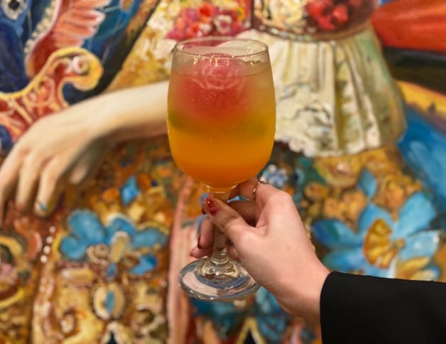 「花果絲絨烏龍茶酒」以烏龍茶為基底,加入柔美的玫瑰和香甜的紅心芭樂,打造如粉紅絲絨般的清雅茶韻,非常適合少女來一杯,若不喝酒的話,妞編輯推薦「冰山玫瑰沙瓦」,內含有覆盆子、芒果泥和黃金柚子,一次集結花香和果香,基底為氣泡飲,怎麼喝都不會醉,重點是點這杯,還會注入一顆玫瑰造型的冰球,肯定是手機先食再說!