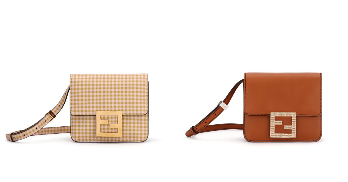 除了鮮豔色系的皮革款之外,也有格紋圖樣的印花皮革包款,特別的是因為包身已經是格紋設計,所以搭配的磁扣就一改水晶款式,改為金色系的FF包釦,讓包包的整體感更加討喜,FENDI FAB包款2月已正式上市!