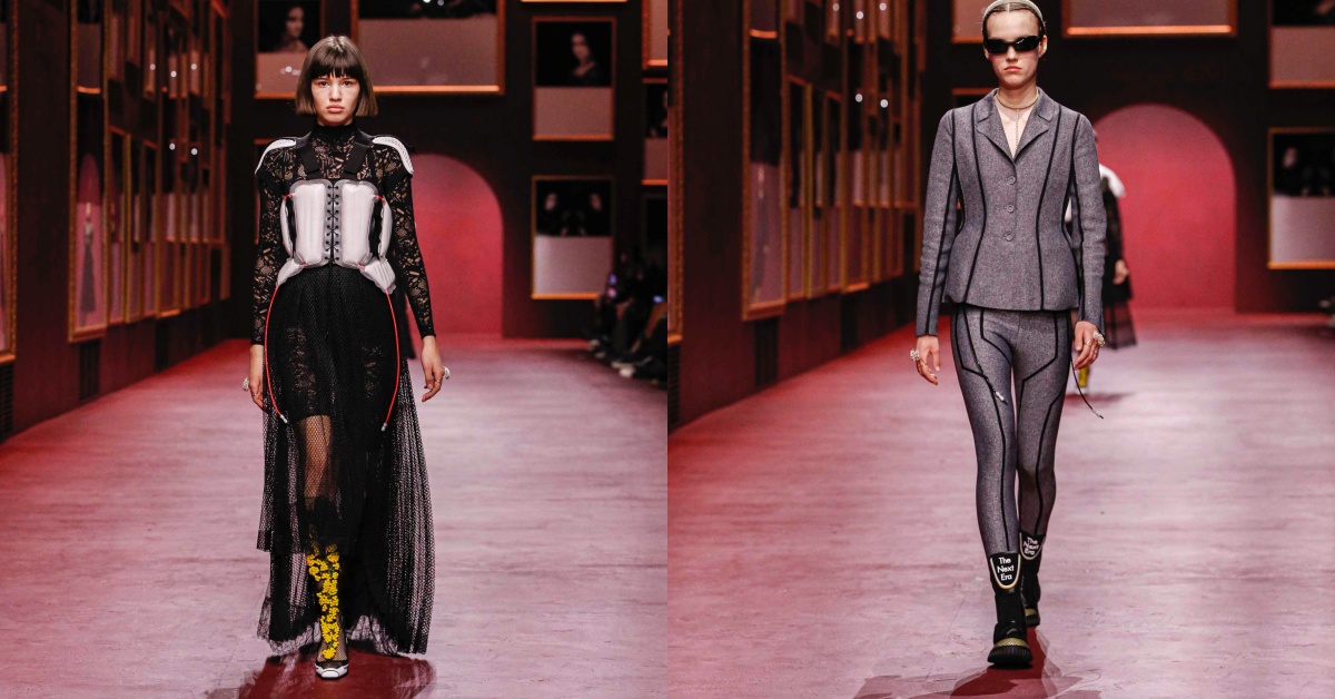 佇足於品牌綿長的歷史遺產,感受時尚洪河的粼粼波光。Dior女裝創意總監Maria Grazia Chiuri設計的2022秋冬時裝系列凝視古往今昔,共振出與時俱進的時尚脈動。義大利藝術家Mariella Bettineschi向16至19世紀女性肖像畫汲取靈感,製成大幅作品佈滿牆面,宛如藝廊的裝置藝術裝點本次秀場,並取名為The Next Era。肖像畫利用切割手法將人物的雙眼堆疊,對從古至今持續制約女性的世俗眼光表達質疑。畫作中倒轉的目光代表了對藝術史的另一層解讀。這場時裝秀的「架構」為Maria Grazia Chiuri的創作概念注入新的活力;以技術和美學的視角,運用形態、工藝、布材與未來科技,重新構建了身體和服裝之間的互動。