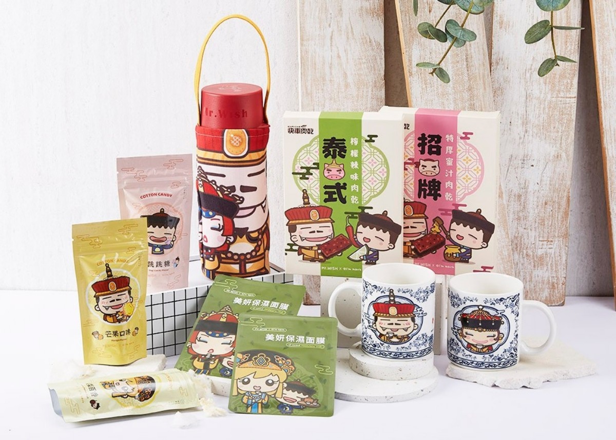 「Mr.Wish鮮果茶玩家」與台灣知名「職場圖文作家-馬克」聯名,以職場宮鬥的主題開發一系列限量獨家商品,凡於門市消費滿50元即可加購限量聯名商品,包含擁有青花瓷器圖騰的馬克杯和宮鬥風隨身瓶飲料提袋!