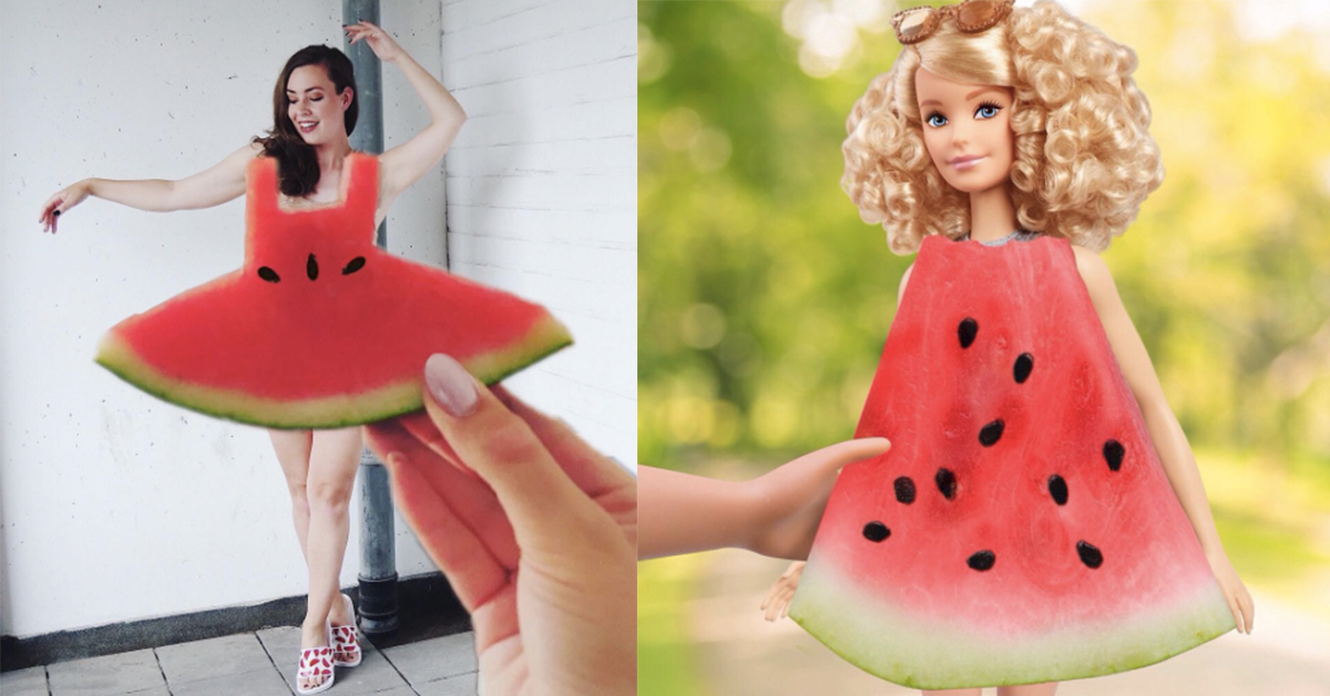 至於體積小小的芭比娃娃嘛...根本不用借位就能直接套上西瓜裝了吧?