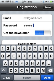第一次開啟Wunderlist Task Manager,需要先註冊一個帳號。只要先輸入一個E-mail,並輸入自設的密碼(雖然沒有特別說明,但需要有英文與數字的組合才能通過)方能註冊。