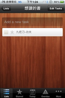 按一下上方的「Add a new list」(新增清單)便能製作新的清單來歸納我們的待辦事項。例如建立一個「購物清單」來記下這一次採購要買的東西。或是建立一個「要讀的書」,當在書店看到喜歡的書時便可以記下存在此清單裡,回到家再上網查詢或訂購。
