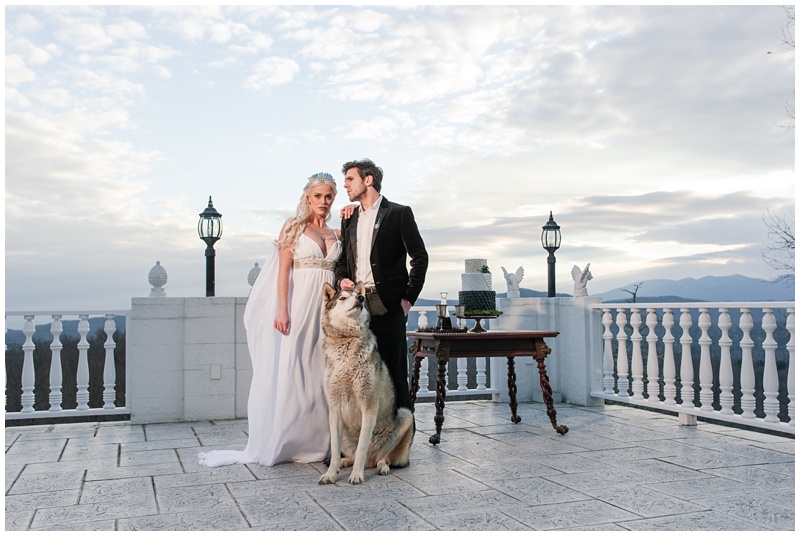 在這次攝影中,比新郎還重要的就是這匹狼了!如果沒有狼,又怎麼稱得上是以《冰與火之歌》為主題的婚禮呢?