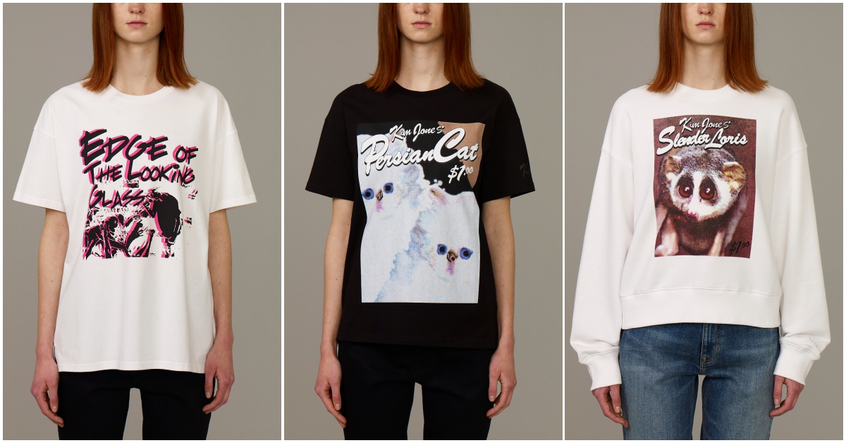 限定系列『KIM JONES GU PRODUCTION』中的復刻牛仔外套、大學T等點綴上Kim Jones簽名、「Edge of the Looking Glass(仙境之緣)」標語,以及演唱會實境刺繡,用色大膽鮮明,充滿街頭與潮流態度。