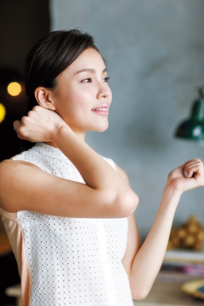 捲起熱毛巾、披掛頸肩,放鬆打電腦而緊繃的肌肉,也能幫助臉部血液循環,促進肌膚吸收面膜的美白精華。