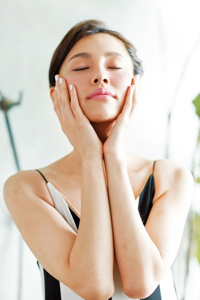 從顴骨往太陽穴方向,刷上腮紅或塗抹腮紅膏,打造彷彿運動後的紅潤感,給人活力充沛、肌膚與身心都充滿元氣的感覺。