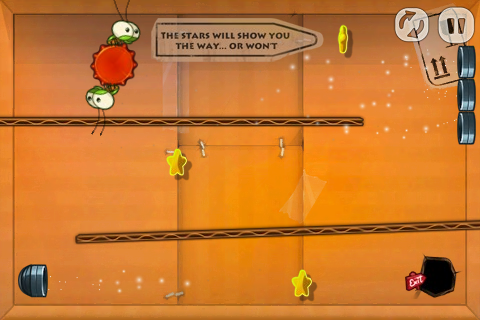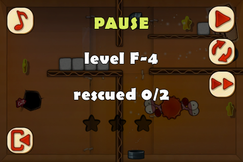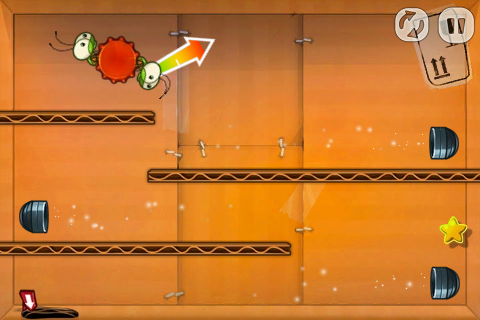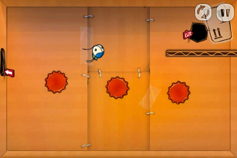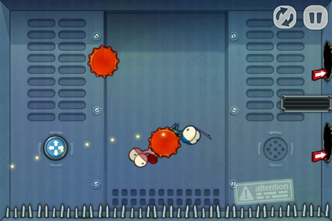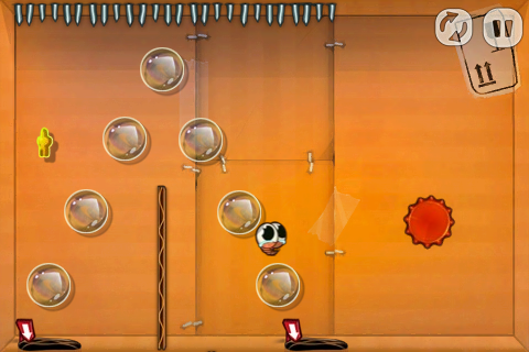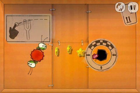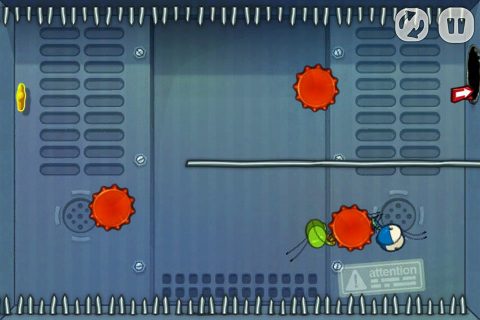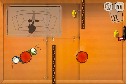 有些比較大型的關卡可能會有好幾個房間,可以在邊邊角角的開口邊發現畫有箭頭的紅色標示牌,只要在畫面中任一處滑動就可以看到別間房間長什麼樣子了。難保飛過去的蟲蟲們會落到滿佈危險的空間當中,所以在彈射之前建議先看看開口的另一端是什麼樣子囉!